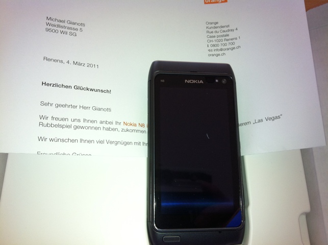 Wir freuen uns, Ihnen mitzuteilen, dass Sie zu den glücklichen Gewinnern der Verlosung unseres «Las Vegas » Rubbelspiels gehören. Ihr Preis ist ein Nokia N8.